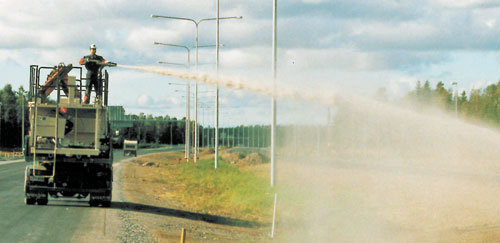 Toteutamme tieluiskien ja muiden suurten viheralueiden kylvötyöt kuorma-auton alustalle asennetulla Hydro Seeder märkäkylvökalustolla . Ulottuvuus koneyksiköstä n.50 metriä . Kylvön yhteydessä voidaan levittää tarvittaessa myös lannoitteet ja jyrkkiin luiskiin sideaineet. Maisemanurmetuksissa asiakkaitamme ovat olleet mm. Destia, Skanska , YIT, GRK, Oteran , Kreate ja useita lentoasemia .